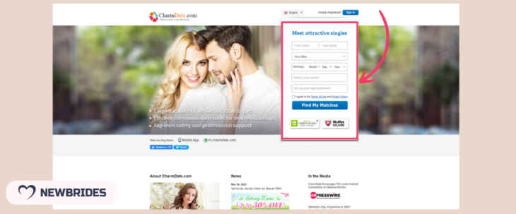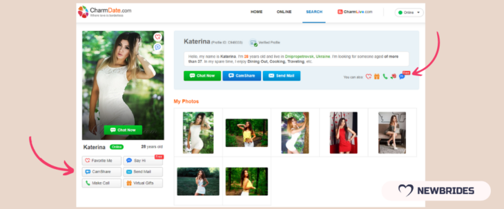 Our goal is to offer you detailed and honest information about a dating website. Newbridesmatch.com have plenty of experienced professionals who know how to review online dating platforms. In these sections, we are going to tell you the truth about CharmDate and what our experts have found out about this place. At the end of each part of the analysis, we will leave a rating of a feature that we discussed so that you could see the strengths and weaknesses of Charm Date.